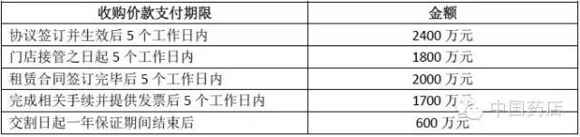 本次收購經(jīng)盡職調(diào)查和雙方共同協(xié)商一致后初步確定交易價格為不超過10,600萬元,其中8,500萬元用于支付門店轉(zhuǎn)讓費(含門店固定資產(chǎn)和門店裝修等),并以不超過2,100萬元購買其存貨(商品),所購買存貨具體金額以最終實物交接盤點計算金額為準(zhǔn)。